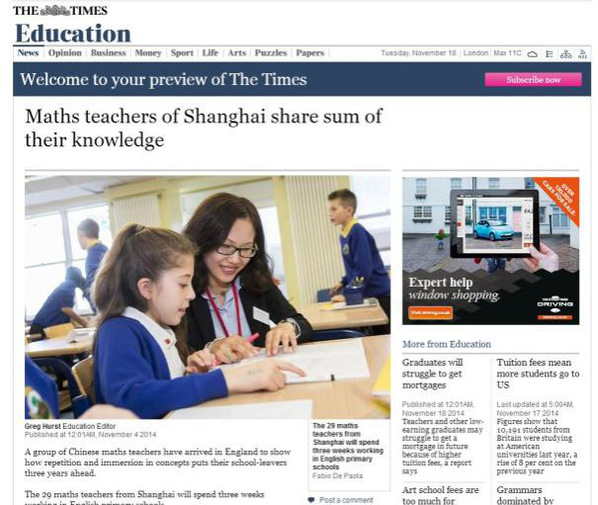 Figure 3 The Times' Report on the China-England Mathematics Teacher Exchange Program