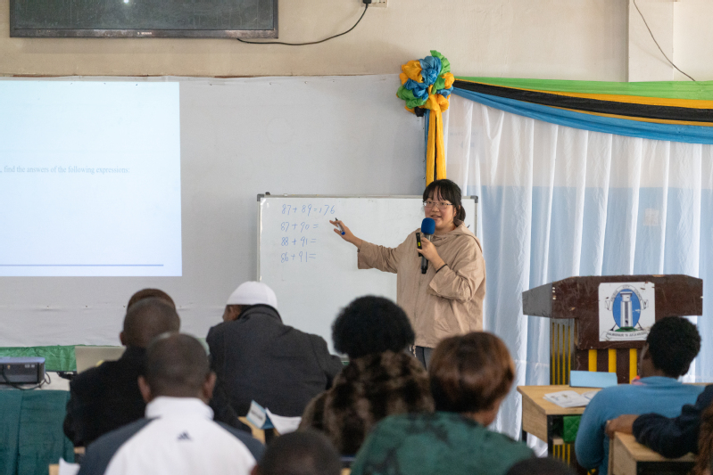 On the morning of July 17, the Volunteer Team visited Dr. Samia Primary School again. Huang Heping, a mathematics teacher from the International Division of Fudan University Affiliated High School, took real-life scenarios as the starting point and delivered a demonstration lesson titled Addition of Five-Digit Numbers to the school’s students and teachers. In the afternoon teaching research activity, Chinese and Tanzanian teachers held in-depth exchanges on teaching methods, content presentation, and student participation. After the research activity, Teacher Huang Heping continued to refine the lesson design and conducted multiple teaching rehearsals to fully prepare for the large-scale regional public lesson scheduled for the next day.