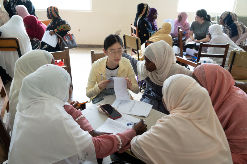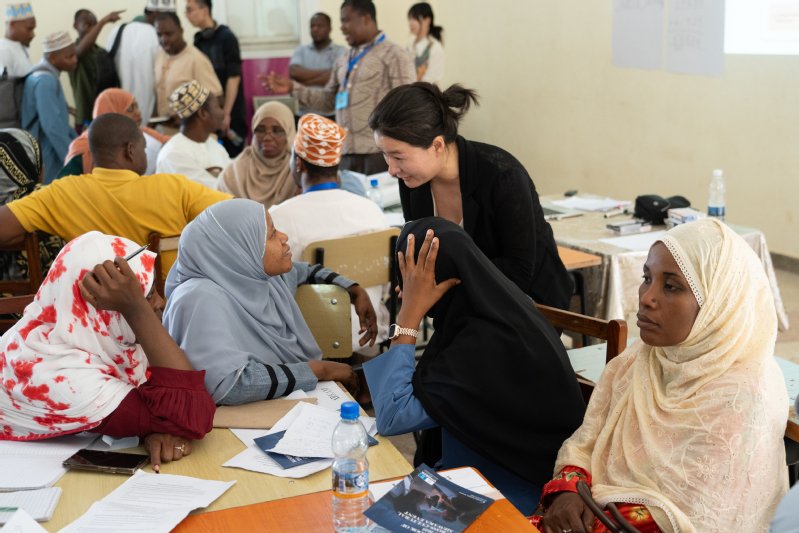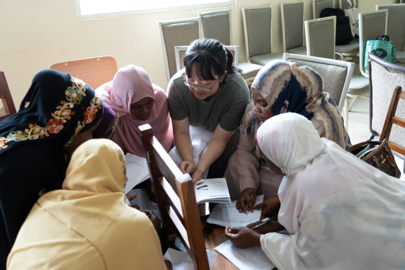 On the morning of July 18, Teacher Huang Heping delivered another public lesson on Addition of Five-Digit Numbers at the Kiembe Samaki Teacher Resource Center, attracting over 100 mathematics teachers from Zanzibar to observe the lesson and participate in discussions. Student volunteers also actively engaged in tasks such as lesson preparation, material distribution, class observation, and post-class discussions, providing support for this large-scale event. During the subsequent teaching sharing session, Zhang Yunji, a doctoral student, delivered a special report on variation teaching with specific teaching cases, explaining the definitions and connotations of mathematical tasks and variation. On the afternoon of the same day, Dr. Shen Yihua systematically introduced the process and core characteristics of China’s TRG activities to the Zanzibari teachers who participated in the public lesson, and detailed the usage method of the classroom observation checklist. During the subsequent teaching research session, members of the Volunteer Team joined various groups of Zanzibari teachers for discussions, guiding them to share their observation experiences based on the checklist.