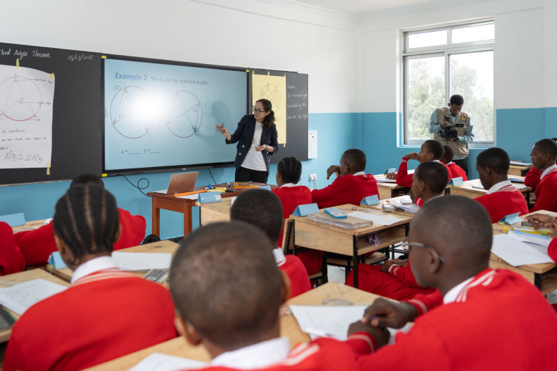 On the morning of July 25, Dr. Fu Jing, a mathematics teacher from the International Division of Shanghai Experimental School, delivered a demonstration lesson titled Theorem of Inscribed Angles Subtended by the Same Arc. In the class, she first guided students to review core geometric concepts such as arcs and central angles, then dynamically demonstrated the positional changes of points on a circle through animations, helping students intuitively understand the geometric essence of inscribed angles subtended by the same arc being equal, and inspired them to think about the in-depth logic of an infinite number of inscribed angles corresponding to the same arc. After the class, Chinese and Tanzanian teachers held in-depth discussions on student classroom participation and teaching methods. Tanzanian teachers emphasized that teaching content should be connected to students’ prior knowledge and put forward suggestions for improving the new lesson segment, aiming to enhance teaching effectiveness and stimulate students’ multi-angle thinking and problem-solving abilities.