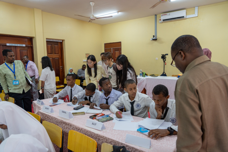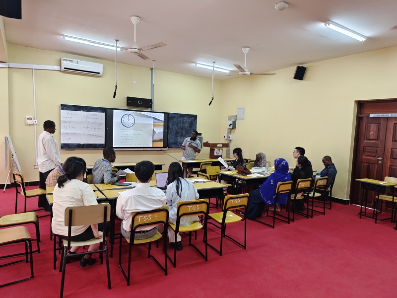 On July 16, the Volunteer Team visited Tumekuja Secondary School—known as a Five-Star School—to carry out teaching exchange activities. In the principal’s office, the principal provided a detailed introduction to the school’s development history, faculty structure, educational philosophy, and the meaning of being a Five-Star School. On the morning of the same day, Hafidh Ally Hamad, a mathematics teacher at Tumekuja Secondary School, delivered a demonstration mathematics lesson titled Geometric Transformations: Rotations in a smart classroom. At noon, the team visited the Zanzibar Institute of Education for exchanges. During the meeting, Mr. Mussa stated that he hoped this exchange would inject new vitality into mathematics teaching in Zanzibar and promote the sustainable development of local mathematics education. In the afternoon, the Volunteer Team returned to Tumekuja Secondary School, where Gu Yuanhao, a mathematics teacher from the International Division of Fudan University Affiliated High School, delivered a second lesson on Geometric Transformations: Rotations in the smart classroom, making full use of the ICT advantages of the smart classroom. Teachers observing the class and student volunteers used classroom observation checklists to record their observations, which received a warm response on site. During the post-class teaching research activity, the two lecturers respectively explained their lesson designs and reflected on their teaching, while other teachers actively exchanged views on the details of teaching design and implementation. With the participation of teachers and student volunteers, China’s TRG mechanism and Tanzania’s local MEWAKA (teacher group) mechanism complemented and advanced each other.
