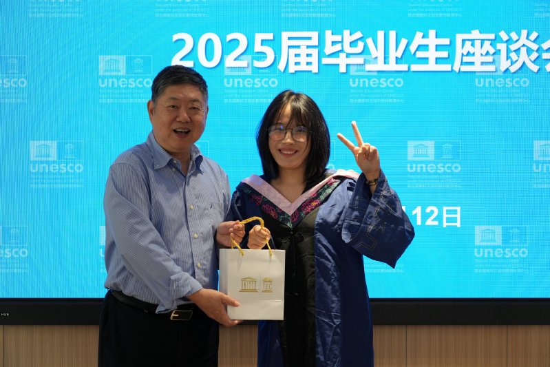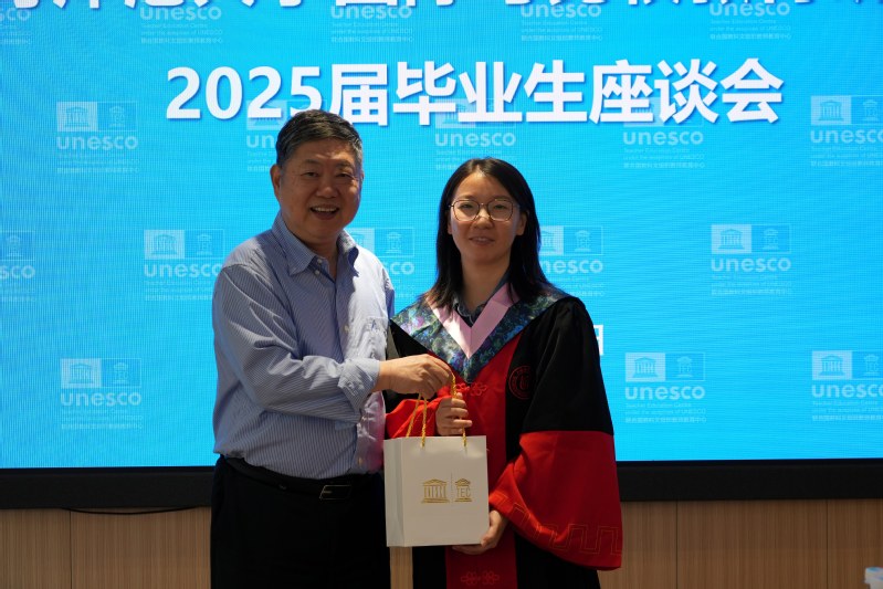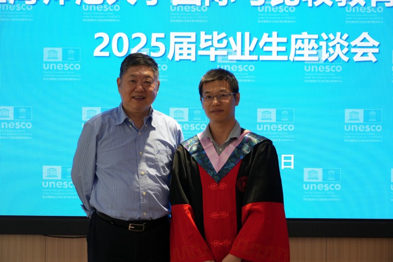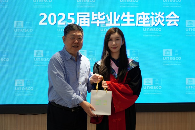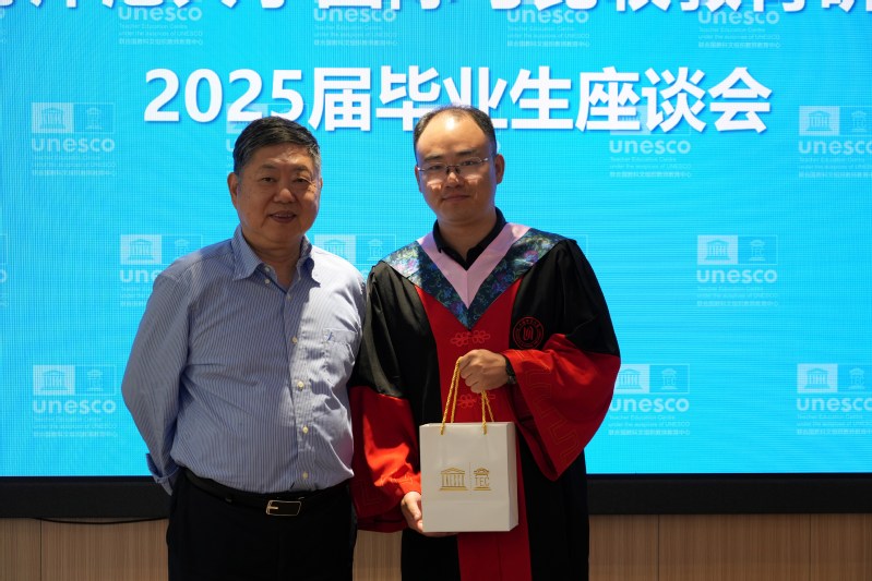 On the afternoon of June 12, 2025, our Institute held a symposium for the 2025 graduating class at Mingyuan Hall of the UNESCO Teacher Education Centre (hereinafter referred to as the Centre). Zhang Minxuan, Director of the Centre; Professor Hu Guoyong, Deputy Director; and 10 other faculty members, along with all master’s and doctoral graduates of the 2025 cohort, attended the event. The symposium was chaired by Associate Professor Song Jia, Secretary of the Party Branch of the Institute.