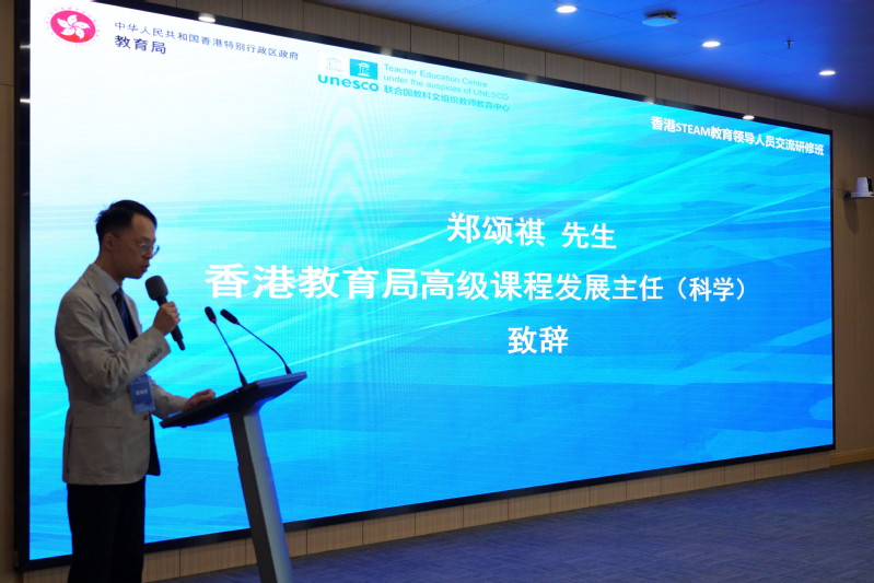 On the morning of April 18, 2025, the closing ceremony of the 3rd Hong Kong STEAM Education Leaders Exchange and Training Program was successfully held at the UNESCO Teacher Education Centre (TEC). Attendees included Mr. Zheng Songqi, Senior Curriculum Development Officer (Science) of the Education Bureau of the People’s Republic of China, Hong Kong; Mr. Cheung Tsz-wai, Senior Curriculum Development Officer (Primary School-based Curriculum Development); Mr. Chan Ka-lok, Curriculum Development Officer (Mathematics); Professor Zhang Minxuan, Director of TEC; Professor Hu Guoyong, Deputy Director of TEC; and 32 primary and secondary school principals and teachers from Hong Kong. The ceremony was chaired by Professor Hu Guoyong.