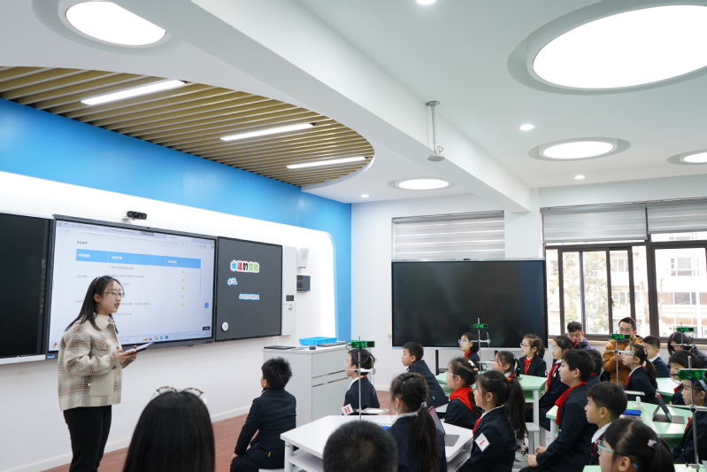 At Yangjing Juyuan Experimental School, the delegation first observed a lesson themed Changes in Water Temperature. The teacher guided students to conduct experiments independently, stimulating their inquiry and hands-on abilities. In the discussion session, the school first presented the development of its STEM education and gave a case explanation titled Research and Development of Domino Science Experiment Devices Based on Multi-sensor Implementation, vividly demonstrating the positive results of the school's STEM education.