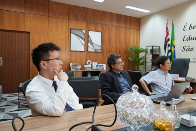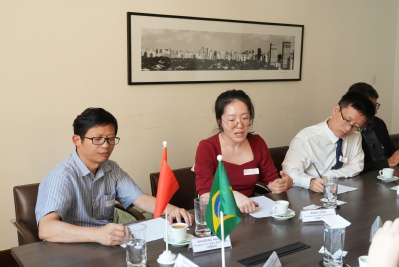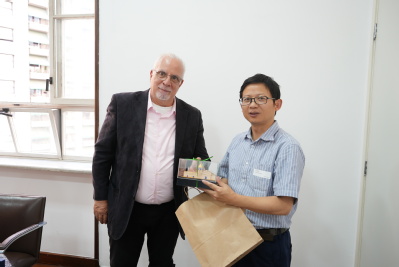 On the evening of September 26, the Centre’s team, together with Professor Puppim, visited the International Affairs Office of São Paulo Municipal Government. Mr. Flávio Patrício, Director of the Office; Ms. Rafaela Souza, Affairs Consultant; and relevant personnel responsible for teacher international exchanges had a lively discussion on the China-Brazil mathematics teacher exchange and schedule arrangement. The two sides exchanged gifts to mark their friendship.