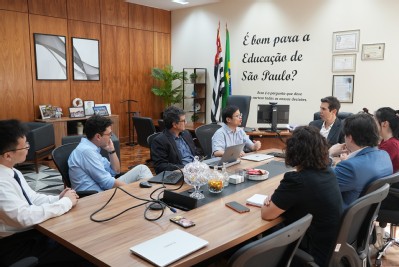 On the afternoon of September 26, the Centre’s team, together with Professor Puppim, visited the São Paulo State Department of Education. They held in-depth discussions with Mr. Renato Feder, Director of the Department of Education, and relevant personnel responsible for mathematics teacher professional development on China-Brazil mathematics exchanges and teacher training. Professor Huang Xingfeng and Dr. Shen Yihua introduced Shanghai’s curriculum standards and teaching philosophy to Director Feder, and briefly outlined the itinerary of the Brazilian gold medal teachers’ visit to Shanghai. Dr. Ding Ruoxi reviewed the Centre’s previous educational exchanges and cooperation with the United Kingdom, Australia, Tanzania, ASEAN countries, and other regions. Director Feder presented the current educational situation in São Paulo State to the Centre’s team and personally demonstrated the application functions of the São Paulo State Education Big Data Monitoring Platform. Finally, the two sides exchanged gifts as a token of friendship.
