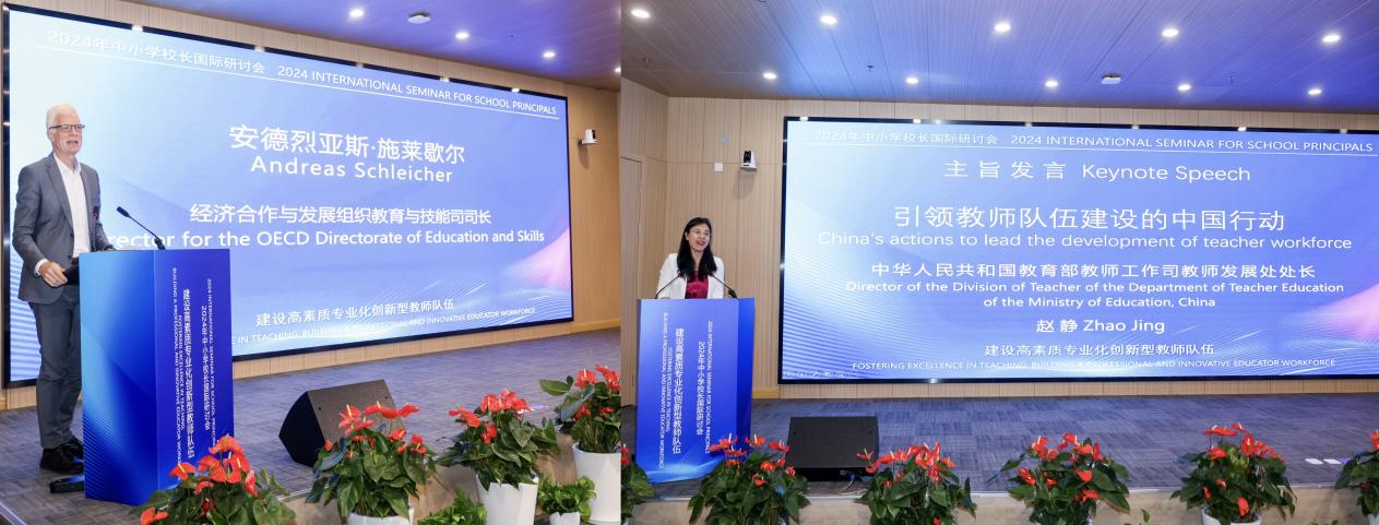 Following the opening ceremony, in the first half of the plenary session, Mr. Andreas Schleicher, Director of the OECD Directorate for Education and Skills, delivered a keynote report introducing global trends in teacher development. Zhao Jing, Director of the Teacher Development Division, Department of Teacher Work, Ministry of Education, gave a keynote speech titled China's Actions in Leading Teacher Workforce Development, presenting China's local practices in building a high-quality, professional, and innovative teacher workforce.