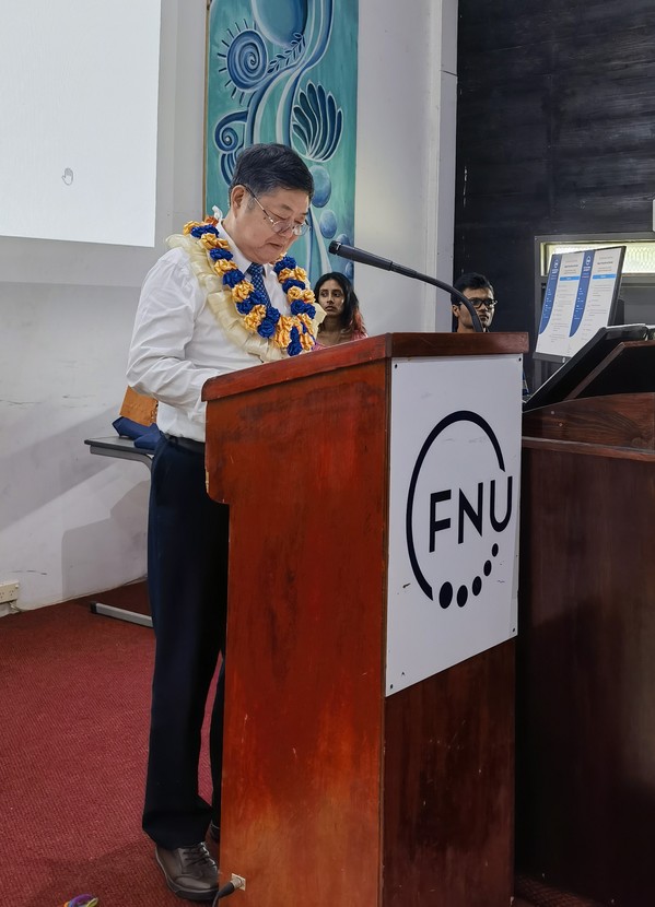 At the welcome ceremony of Fiji National University, Professor Zhang Minxuan delivered a warm speech, reviewing the cooperation history between the Centre and Fiji National University, and expressing expectations for deepening bilateral exchanges and cooperation to promote the professional development of teachers in Pacific island countries. The two sides held talks on the possibility of establishing a cooperation centre and carrying out joint training of mathematics, English, and Chinese teachers. The Centre also invited teachers from Fiji National University to pursue doctoral and master's degrees at our university.