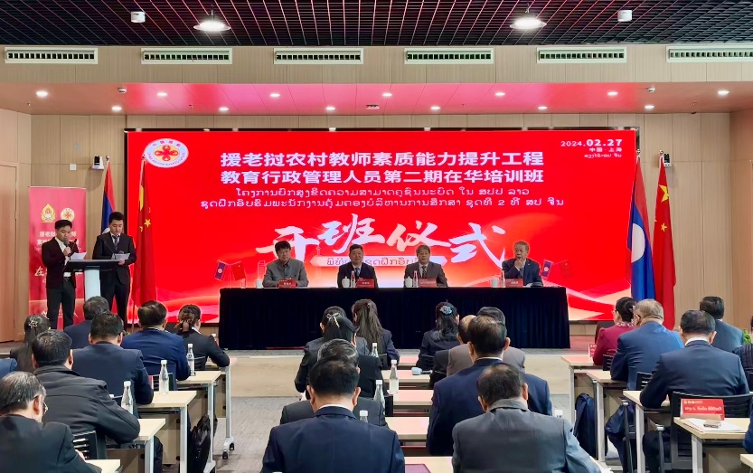 On the morning of February 27, 2024, the opening ceremony of the 2nd Training Program for Lao Educational Administrators in China, part of the Project for Enhancing the Quality and Competence of Rural Teachers in Laos (a Chinese-aided project), was held at the Shicheng Lecture Hall of the UNESCO Teacher Education Center (hereinafter referred to as UNESCO TEC). Mr. Keth PHANLACK, Director of the Teacher Training Department of the Lao Ministry of Education and Sports, Professor Zhang Minxuan, Director of UNESCO TEC, Miao Hongcai, President of Shanghai Education Publishing House, and Professor Hu Guoyong, Deputy Director of UNESCO TEC, attended the opening ceremony and delivered speeches.