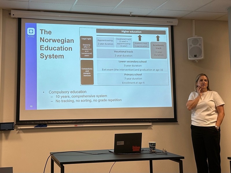 On September 1, the delegation visited the Norwegian Centre for Mathematics Education in Trondheim. Centre Director Kjersti welcomed the delegation. Subsequently, Mari, Dean of the Department of Teacher Education at NTNU, introduced the structural framework and development priorities of Norway’s teacher education system. Director Zhang Minxuan then presented the development history, core functions of UNESCO TEC, as well as its key achievements in teacher education policy research and international training programs. Professor Huang Xingfeng then held in-depth discussions with members of the NTNU project team on specific details of the research plan for the established Sino-Norwegian educational research cooperation project.