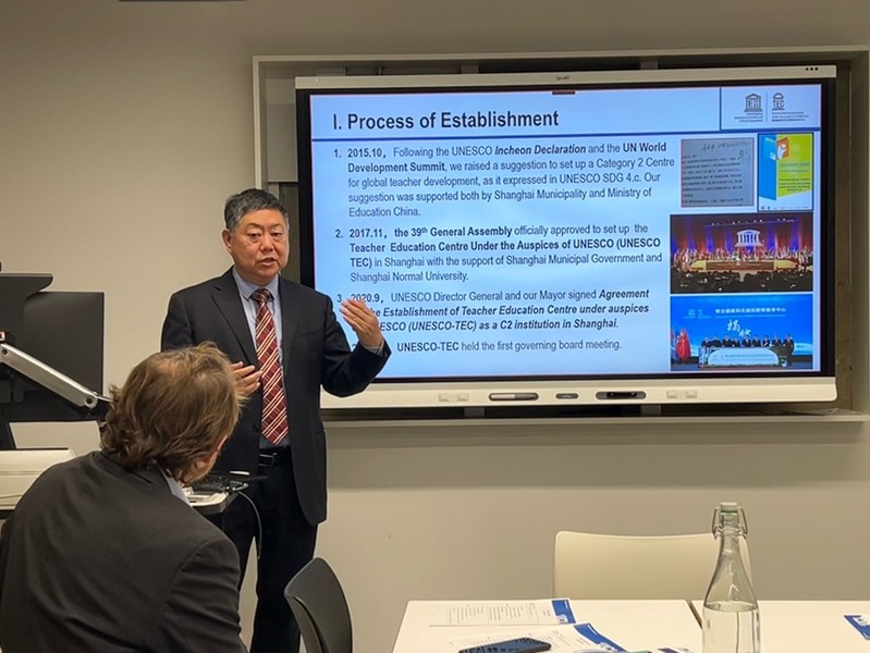 From September 2 to 6, a delegation comprising Director Zhang Minxuan from the Teacher Education Centre under the auspices of UNESCO (UNESCO TEC), Professor Huang Xingfeng from the International Centre for Teacher Education at Shanghai Normal University (SHNU), and Dr. Shen Yihua from the Research Institute for International and Comparative Education at SHNU, was invited to visit the UK. They conducted academic visits and exchange activities focusing on issues such as teacher education, educational leadership development, international educational cooperation, and mathematics education.