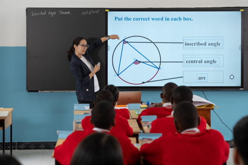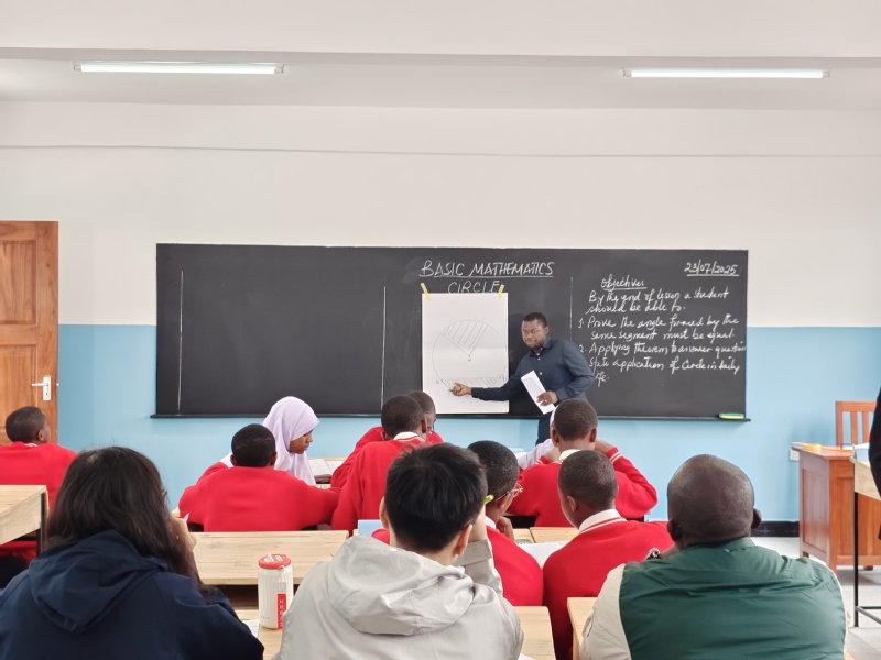 On the afternoon of July 23, the Volunteer Team moved to Arusha Secondary School to continue the day’s teaching exchange activities. During the classroom observation session, Mr. Emanuel Geoffrey Mweta, a mathematics teacher, taught the lesson Theorem of Inscribed Angles Subtended by the Same Arc. Teacher Mweta skillfully integrated diagram demonstrations with heuristic questioning, guiding students step by step to gain a deep understanding of the relationship between inscribed angles subtended by the same arc. The lesson not only emphasized the rigor of knowledge logic but also fully stimulated students’ thinking participation. The entire class featured good interaction and high achievement of teaching goals, reflecting the local teacher’s practical ability in geometry teaching. After the classroom observation, Chinese and Tanzanian teachers immediately conducted group teaching research activities, engaging in in-depth exchanges around key elements in the classroom observation checklist. During the discussion, Tanzanian teachers gradually clarified their understanding of core teaching strategies and actively reflected on their own practical experiences, stating that they had gained substantial insights. This high-level teaching research dialogue, which lasted for more than an hour, not only promoted in-depth collision of educational concepts but also laid a solid foundation for sustained collaboration and professional growth between Chinese and Tanzanian teachers.