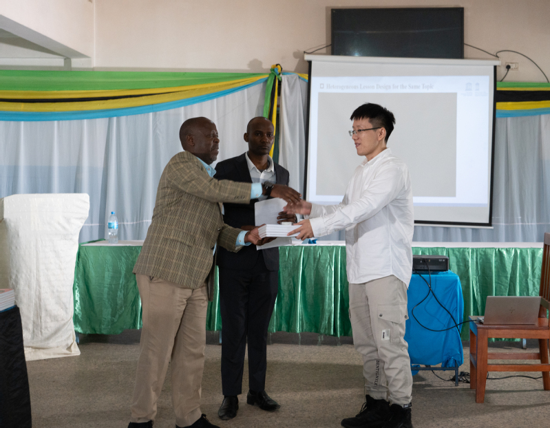 At the subsequent teaching resource donation ceremony, Professor Zhang Minxuan, Director of the Centre, donated the Share Maths (Shared Tree) teaching resources to representatives of Tanzanian teachers on behalf of the Chinese side. This set of resources includes textbooks, courseware, lesson plans, and video materials, aiming to support mathematics teaching reform in Zanzibar and promote the localization and digitalization of high-quality educational resources.