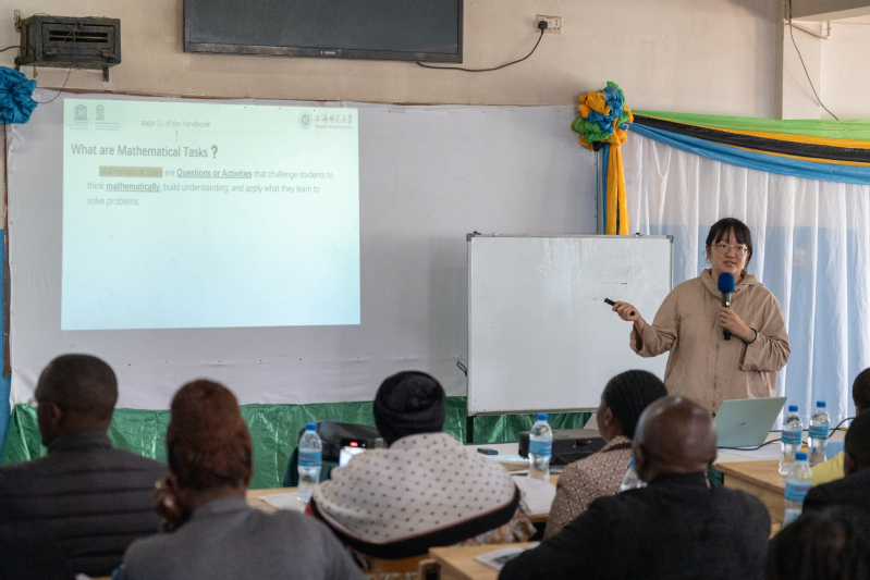 During the subsequent teaching exchange session, Shi Yujia, a master’s student at SHNU, systematically introduced the process and core characteristics of Shanghai’s TRG activities, and explained the usage method of the classroom observation checklist in detail, helping Arusha teachers better understand and flexibly use this tool for classroom observation and teaching recording. Gong Yushu, an undergraduate student at SHNU, explained the core concepts of mathematical tasks and variation teaching in the teaching manual in a simple and in-depth manner with specific teaching cases, helping Arusha teachers fully grasp the connotation of variation teaching and effectively transform it into classroom practice. In the subsequent teaching research discussion, Arusha teachers were divided into groups and actively shared their lesson observation experiences and teaching insights under the guidance of the observation checklist, creating a lively and productive exchange atmosphere.