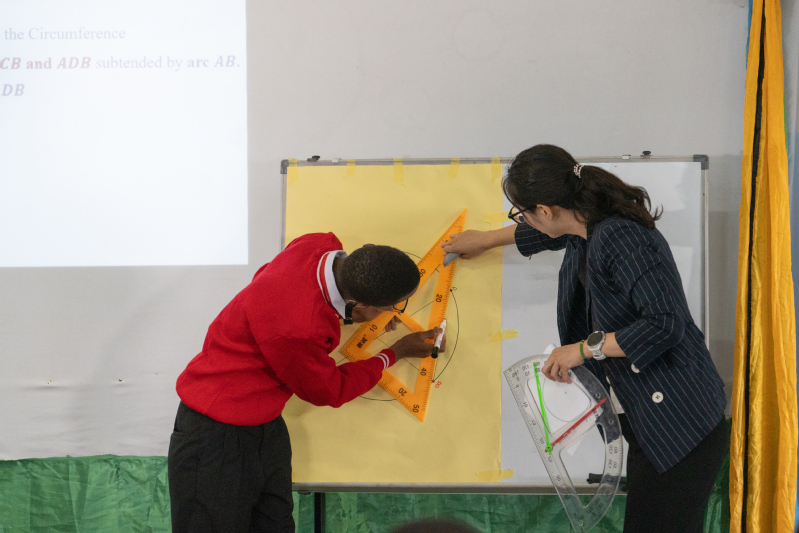 After multiple teaching rehearsals and in-depth discussions over the weekend, Dr. Fu Jing delivered another public lesson on Theorem of Inscribed Angles Subtended by the Same Arc at Arusha Secondary School on the morning of July 28. This lesson attracted over 100 mathematics teachers from the Arusha region to observe on site and actively participate in discussions. In the class, Dr. Fu Jing introduced relevant geometric concepts in a step-by-step manner, carefully guided students to review the use of protractors, and encouraged students to explore the mathematical theorem of inscribed angles subtended by the same arc being equal through hands-on practice. The classroom atmosphere was lively, and students achieved remarkable learning results.