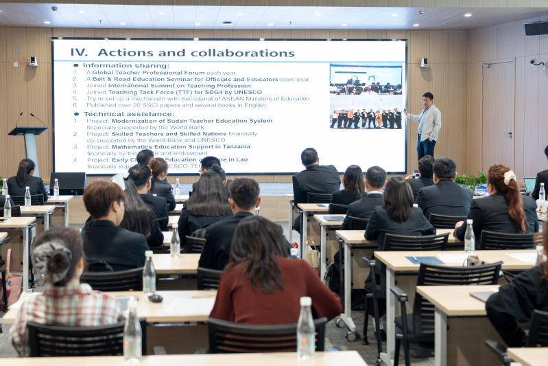 On the morning of April 23, the delegation, led by Director Suban Pornwiang, visited TEC. Professor Hu Guoyong, Deputy Director of TEC, delivered a speech. He first extended a warm welcome to the visiting faculty and students from Chiang Mai University, noting that the UNESCO Teacher Education Centre is an important global platform for teacher development and is willing to share excellent experiences in teacher education with the world. He expressed hope that the two sides would take this visit and exchange as an opportunity to conduct in-depth discussions on common issues in China-Thailand educational development and promote cooperation in teacher education, graduate training, and academic research. Associate Professor Zhu Xiaohu of TEC introduced the Centre’s development history, mission, vision, and current key projects, and expressed expectation for in-depth cooperation with Thailand in teacher development in the future.