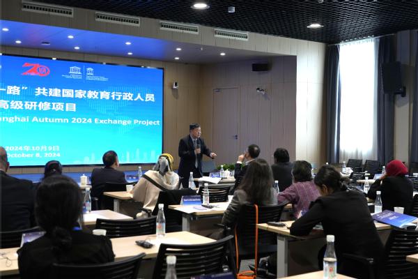 On the morning of October 9, the Belt and Road Shanghai Autumn 2024 Exchange Project, funded by the Shanghai Municipal Education Commission and co-hosted by the UNESCO Teacher Education Centre (hereinafter referred to as the Centre) and the International Exchange Division of Shanghai Normal University, officially kicked off. This year’s exchange theme is STEM Teacher Training, with a focus on teachers’ information literacy and the development of STEM education in various countries. Approximately 30 government officials, experts, and scholars from around the world participated in the program.