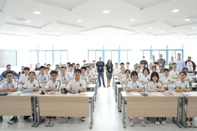On the morning of September 23, 15 Brazilian teachers and scholars arrived at Shanghai Foreign Language School Affiliated to Shanghai International Studies University (SFLS). Vice Principal Yue Lan warmly welcomed the Brazilian delegation at the welcome ceremony and highly praised the cooperation between the two countries in mathematics education. She particularly mentioned that the demonstration class to be taught by Brazilian teachers was highly anticipated, and expressed hope that this exchange would promote mutual learning between Chinese and Brazilian teachers in educational concepts and teaching methods. As the Brazilian coordinator of the program, Professor Jose briefly reviewed the activities of the Brazilian teacher team in Shanghai over the past few days, and expressed hope that mathematics teachers from China and Brazil would establish long-term academic ties and cooperation mechanisms through this collaboration. The school also arranged students from its Portuguese language classes to receive the Brazilian guests, fully demonstrating its characteristics and strength in international education.