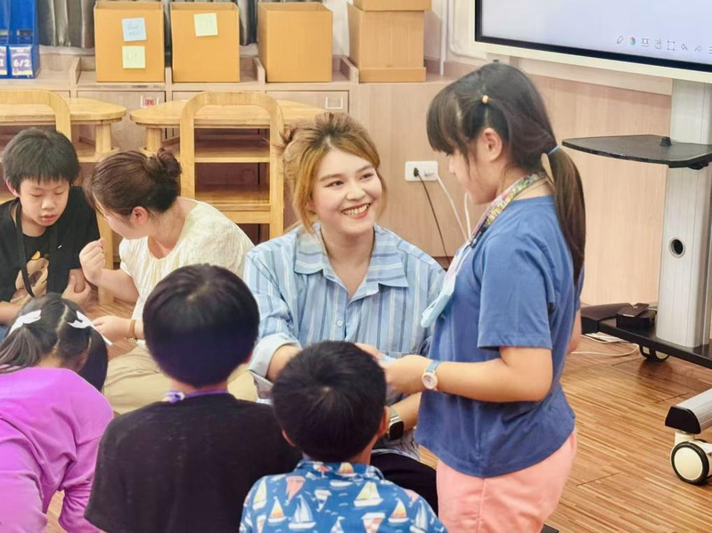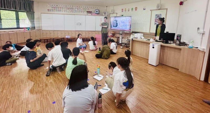 In the Chinese language teaching session, members of the study tour group designed interactive classes themed Shanghai Culture. Elements such as shengjianbao (pan-fried pork buns), the Oriental Pearl Tower, and Anfu Road coffee came to life through games and paintings. The children recited Quiet Night Thoughts in their  Chinese, with laughter transcending national borders echoing inside and outside the classroom.