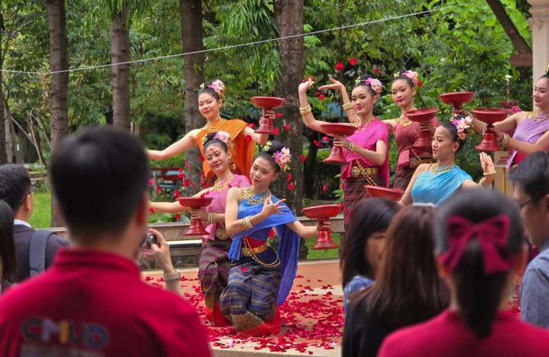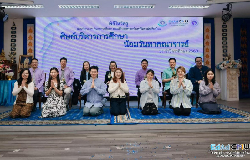 On July 6, the study tour group joined faculty and students from the Department of Educational Management, Chiang Mai University, to witness and participate in Thailand’s distinctive teacher worship ceremony. Dressed in Thai school uniforms, students of the department presented flowers, incense candles, and banana leaf garlands to their teachers, performing the wai gesture, while teachers tied white strings symbolizing blessings around the students’ wrists. Many faculty and students were moved to tears when the entire assembly recited the Ode to Respecting Teachers. This solemn ceremony not only embodies the inheritance of the spirit of respecting teachers and valuing education but also highlights the mission of educators to nurture hearts with virtue and cultivate people through culture.