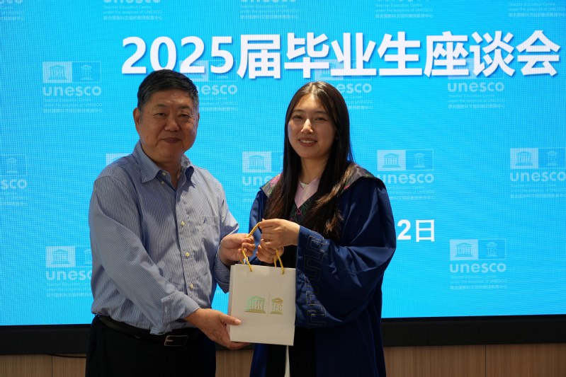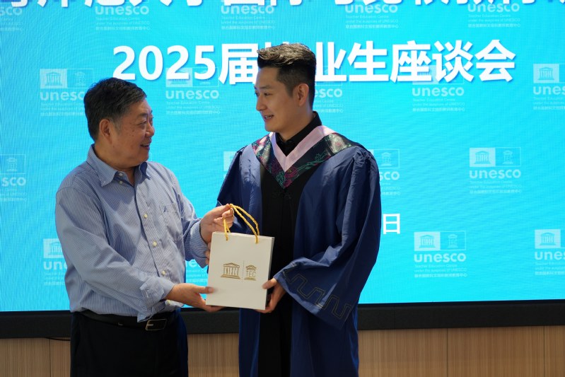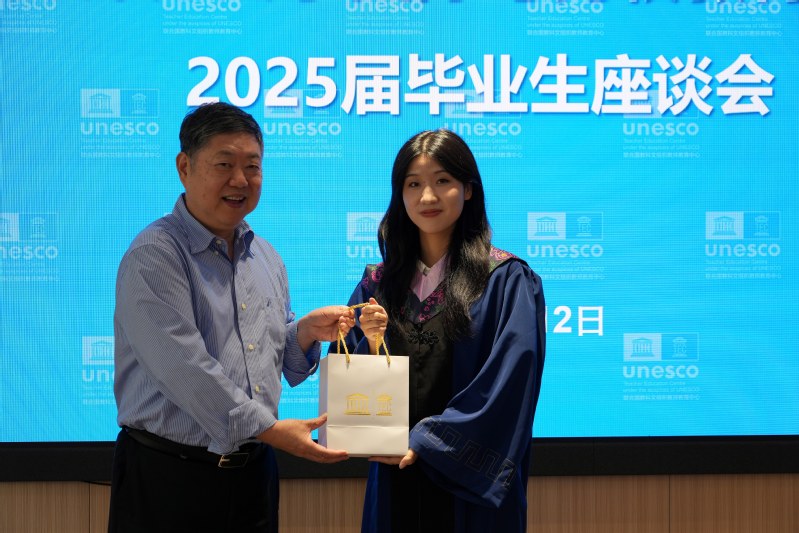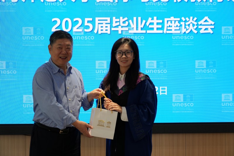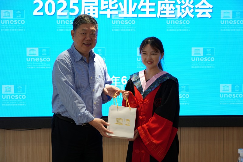 On the afternoon of June 12, 2025, our Institute held a symposium for the 2025 graduating class at Mingyuan Hall of the UNESCO Teacher Education Centre (hereinafter referred to as the Centre). Zhang Minxuan, Director of the Centre; Professor Hu Guoyong, Deputy Director; and 10 other faculty members, along with all master’s and doctoral graduates of the 2025 cohort, attended the event. The symposium was chaired by Associate Professor Song Jia, Secretary of the Party Branch of the Institute.