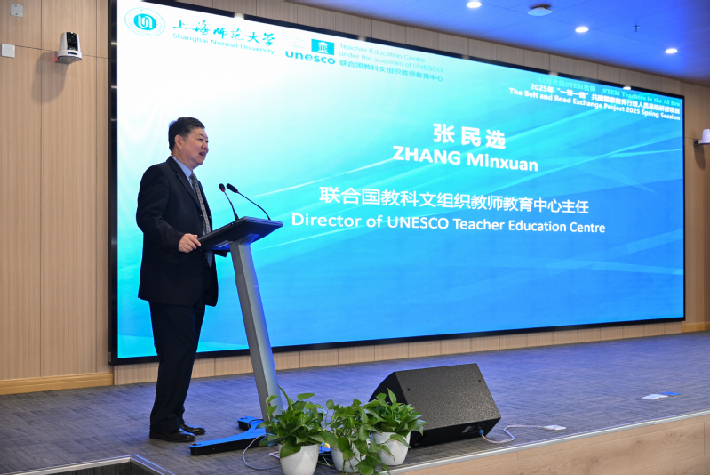 On the morning of May 12, the 2025 Senior Training Program for Educational Administrators from Belt and Road Initiative (BRI) Partner Countries, funded by the Shanghai Municipal Education Commission and co-hosted by the UNESCO Teacher Education Centre (hereafter referred to as the Centre) and the Office of International Exchange at Shanghai Normal University (SHNU), officially kicked off. This year’s exchange theme, STEM Teachers in the AI Era, aims to promote cross-border cooperation by facilitating the exchange of innovative ideas, practical experiences, and feasible strategies in STEM education. Approximately 36 government officials, experts, and scholars from around the world are participating in the program.