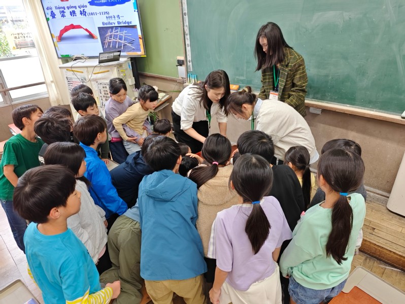 The theme of this program was Building Bridges of Friendship, Discussing STEM Education Together. Based on bridges as the course content, the 14 graduate students designed 10 cross-cultural STEM classes respectively. The team of Zhou Jiaying and Zhang Yunhui focused on the core concept of triangular stability and guided Japanese primary school students to use creativity in building bridges. The team of Shi Fangyuan, Xu Miao, and Zheng Rouyu took the laminated beam arch bridge in Along the River During the Qingming Festival as the entry point, connected it with the truss bridge principle, and let students complete the building task collaboratively with wooden chopsticks. Through three links—knowledge explanation, experimental verification, and hands-on production—the team of Fang Fan, Sun Ziwei, and Liu Qingpei helped students understand the classification, load-bearing principles, and structural characteristics of bridges, and encouraged everyone to complete works through collaborative innovation. By guiding children to make bridges in groups, the team of Han Jieqi, Wan Junkai, and Pang Zhengpei helped students understand the connecting function of bridges and extended the discussion to invisible bridges, enabling students to grasp the tangible functions and intangible significance of bridges. The team of Wei Mingfang, Xu Xiaoxiao, and Cui Zichen explored the mechanical principles of bridge structures through experiments; students collaboratively designed and made a China-Japan Friendship Bridge Model, which stimulated interest in cross-cultural communication and teamwork ability. These creative classes were loved by Japanese students. The principal of the affiliated school of Kyoto University of Education said, We deeply admire the earnest and dedicated learning attitude of your school’s students and the course content they presented. After the classes, some excellent bridge works were left in the school for display, allowing the achievements of this cross-cultural teaching practice to be passed on continuously and becoming a testimony to the friendly exchange between Chinese and Japanese students.