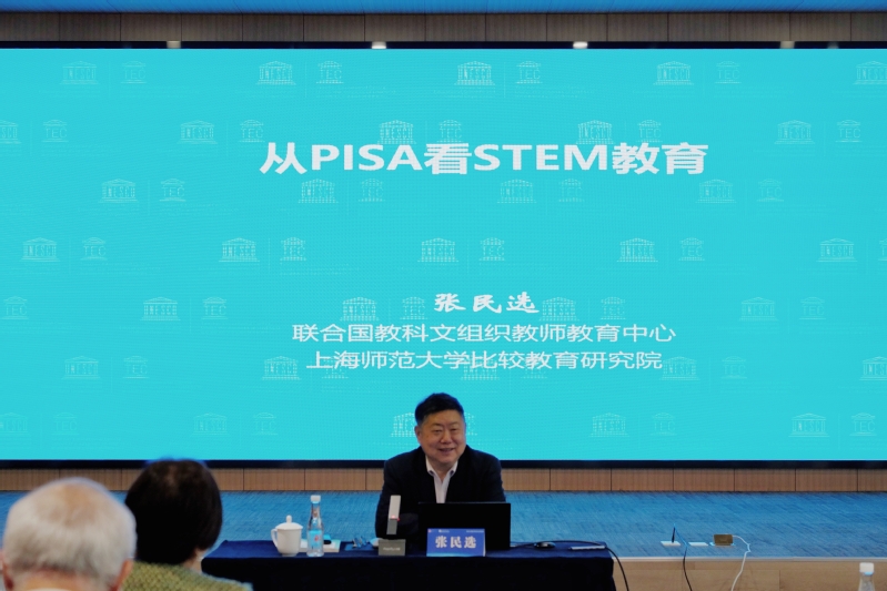 On February 28, Professor Zhang Minxuan, Director of TEC, delivered a lecture themed Shanghai's STEM Education from the Perspective of PISA. He discussed Shanghai's performance in mathematics and science in PISA tests and shared his thoughts on why STEM education should be carried out and how to implement it in the AI era. Professor Zhang believed that developing STEM education should be oriented to all to achieve fair and high-quality education, improve educational conditions, and teach students in accordance with their aptitude. It is necessary to actively add interdisciplinary courses, integrate new technologies, promote laboratory upgrading, and facilitate teacher professional development, so that cities and various institutions can support STEM education.