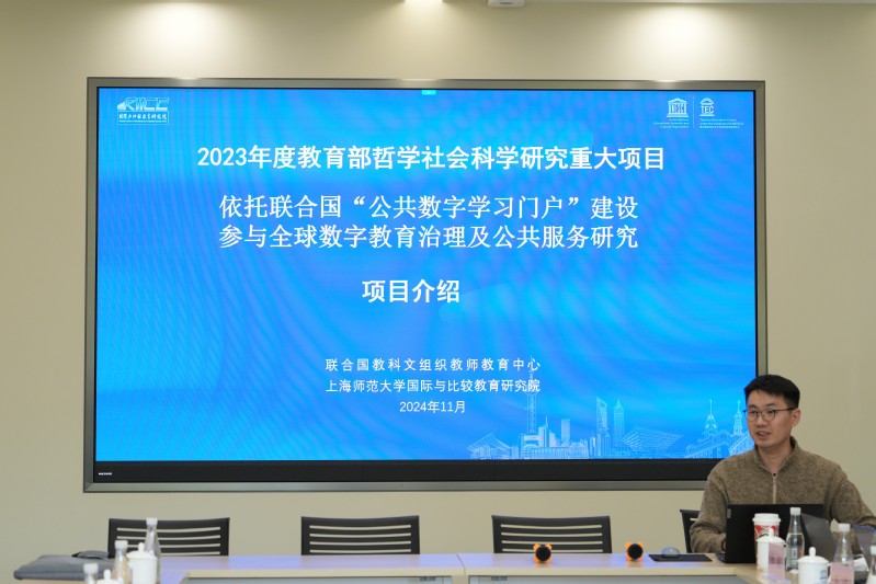 The seminar began with an address by Han Chonghu, Director of the Informatization Division of the Shanghai Municipal Education Commission. He reviewed the relevant arrangements of China’s Ministry of Education in promoting the digital transformation of education in recent years, particularly the remarkable achievements made by Shanghai in the field of educational digitalization, and expressed gratitude for the long-term support of the UNESCO Teacher Education Centre. He emphasized that Shanghai should continue to deepen the international promotion of educational digitalization in the future, explore more experiences with global promotion value, and provide Chinese wisdom for global educational development. Subsequently, Dr. Sun Yang from the Centre’s project team briefly introduced the overall situation of the Public Digital Learning Portal project.