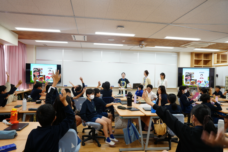 On the morning of the 21st, the teachers and students visited Momoyama Elementary School Affiliated to Kyoto University of Education. As a Designated School for Curriculum Research and Development by Japan’s Ministry of Education, Culture, Sports, Science and Technology (MEXT), the school’s Vice Principal Yoshiyuki Kuwana warmly welcomed the delegation from Shanghai Normal University. He detailed the school’s distinctive features in creative education, educational informatization, school activities, and international exchanges, and showed the group around various facilities. Later, Teacher Song Qingqing, Teacher Fu Yun, and Vice Principal Yoshiyuki Kuwana exchanged gifts. The students and teachers observed a 5th-grade math class and a 4th-grade science class, leaving a deep impression on the school’s student-centered and interactive teaching approach. At noon, the delegation experienced the school’s shokuiku (food education) culture, and during lunch, they had a lively discussion with Vice Principal Kuwana on educational differences between Chinese and Japanese primary schools, including teaching spaces, curriculum design, and teacher-student interaction.