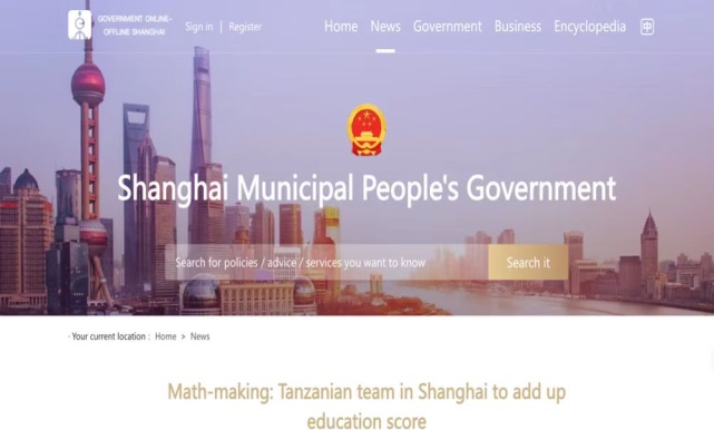 Introduction on the official English website of the Shanghai Municipal Government about Tanzanian educational delegations coming to Shanghai to learn Shanghai Mathematics experiences
