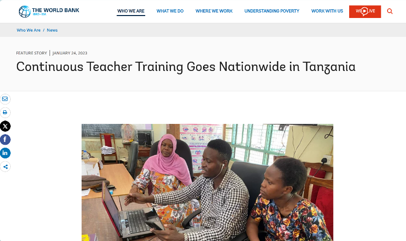 Coverage of the Shanghai-Tanzania Mathematics Teacher Professional Development Project on the World Bank official website