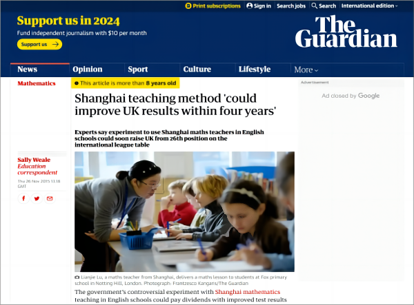 Coverage by The Guardian (UK) on how the dissemination of Shanghai Mathematics enhances UK education