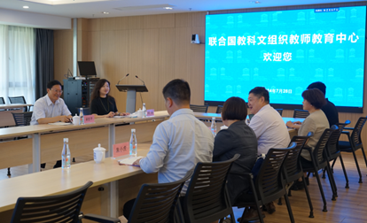 On the afternoon of July 28, Hu Zhiping, Deputy Director of the Center for Language Education and Cooperation (CLEC) under the Ministry of Education, and He Wei, Director of the Standards, Examination and Assessment Division of CLEC, paid a visit to the UNESCO Teacher Education Centre (TEC). Professor Zhang Minxuan, Director of TEC; Professor Wang Jie, Associate Professor Zhu Xiaohu, and Part-time Deputy Director Zhang Huafeng, all Deputy Directors of TEC; and Professor Cao Xiuling, Dean of the College of International Chinese Studies at Shanghai Normal University, attended the research meeting.