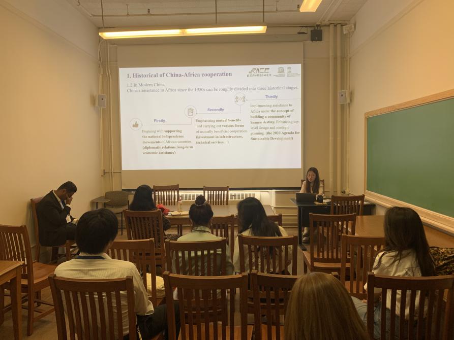Master’s student Ma Yining delivered a report entitled Phase Characteristics, Effectiveness, and Prospects of China’s Higher Education Aid to Africa at a sub-forum. He shared insights from three aspects: the historical phases and characteristics of China’s higher education aid to Africa, the effectiveness of cooperation, and future prospects. He summarized the characteristics of educational aid in different historical periods, clarified China’s philosophy and practices regarding aid to Africa, and attempted to analyze policy prospects for future China-Africa higher education cooperation.