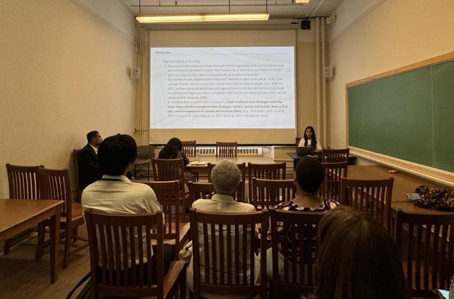 Master’s student Wu Mengying presented a report entitled Exploring the Emotional Labor Experiences of Chinese Volunteer Teachers in Confucius Institutes in Africa at Sub-forum 26. She explored the connection between emotional labor strategies and emotional rules among international Chinese language teachers, analyzing teachers’ choices of emotional labor strategies under the influence of three aspects: teacher professionalism, social culture, and organizational structure. She also highlighted the study’s supplementary significance for research on emotional labor among cross-cultural teacher groups.