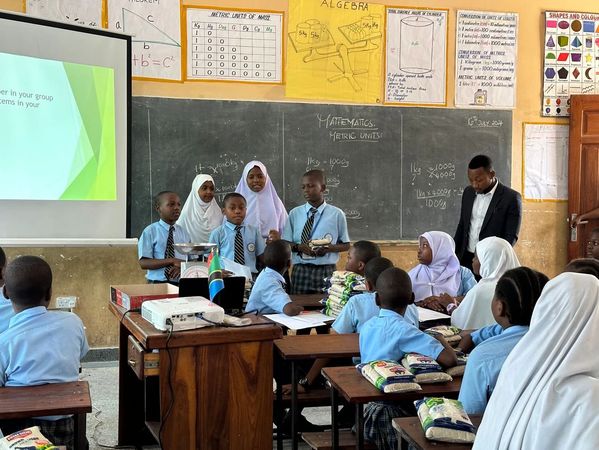 After a night of rest, the Volunteer Group visited Diamond Primary School and Olympia Primary School early on July 16 to observe Tanzanian mathematics classes and conduct mathematics teaching research activities. Principals of both schools warmly welcomed the Volunteer Group. Samwel Faraji, a mathematics teacher from Diamond Primary School, taught Drawing Pie Charts and Interpreting Information, while James Haule, a mathematics teacher from Olympia Primary School, delivered a lesson on Multiplication of Mass Units. The quality of these two classes was unanimously recognized by the Shanghai team. In the post-class teaching research activities, Chinese and Tanzanian mathematics teachers conducted detailed discussions and analyses on the mathematical tasks of the two lessons, with teachers from both sides exchanging views freely amid lively discussions.