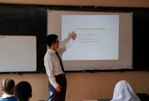 On July 19, the Volunteer Group carried out mathematics teaching and research activities at Tool Secondary School in Dar es Salaam throughout the day. First, Dr. Shen Yihua taught a lesson titled Rectangular Coordinate System: Number Pairs to students at Tool Secondary School. Through diagrams, examples, and interactive exercises, Dr. Shen helped students intuitively understand the rectangular coordinate system and its applications in daily life.
