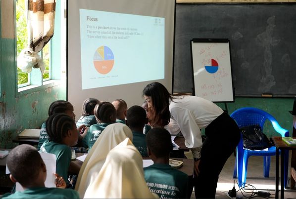On July 17, the Volunteer Group worked at Diamond Primary School throughout the day. Zhang Minxue, a mathematics teacher from the International Department of High School Affiliated to Fudan University, taught a lesson titled Introduction to Pie Charts to students at Diamond Primary School—the first demonstration of a Shanghai mathematics class by this batch of volunteers in Tanzania. Through vivid explanations and interactions, Teacher Zhang Minxue helped students preliminarily grasp the concept of pie charts and the meaning of percentages in them. Students participated actively in the class, creating a lively atmosphere and showing strong interest in mathematics learning. After the class, Teacher Zhang Minxue gave a detailed explanation of her teaching design, delving into every link of the lesson planning, classroom implementation, and teaching adjustments. Student Zhang Yunji provided Tanzanian teachers with a detailed explanation of the rules for classroom observation forms, using practical cases to help them better understand and apply this tool. In the subsequent teaching research activities, Tanzanian teachers asked questions actively and discussed enthusiastically based on the classroom observation forms.