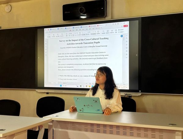 Subsequently, Godson Lema, Acting Director of TIE, explained the current status of Tanzania’s education reform to the Volunteer Group. Principals of the four newly joined schools in the project introduced the basic situation of their schools and the current status of teaching research activities to the volunteers. Dr. Ding Ruoxi briefed the newly joined Tanzanian schools on the background, implementation, previous exchange achievements, and schedule of this phase of activities of the China-Tanzania Mathematics Teacher Professional Development Project. Cheng Jialei, Master’s Student at Shanghai Normal University, provided Tanzanian teachers with a detailed explanation of the rules for the teacher-student questionnaires distributed during this phase of the volunteer activities.