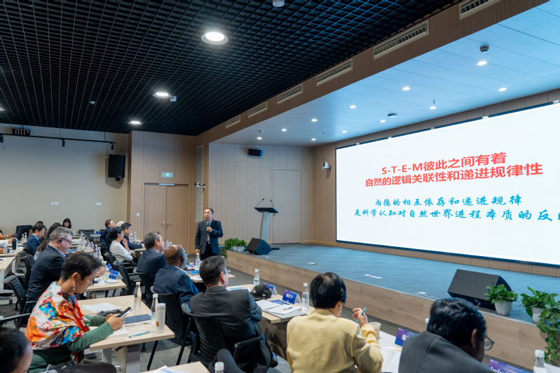 In his report STEM Education: International Development and Current Application, Researcher Xiang Shiqing from the Shanghai Institute of Optics and Fine Mechanics, Chinese Academy of Sciences, took the challenges brought by the digital and intelligent era to learners as a starting point. He introduced the concept, connotation, development history, thinking mode, and teaching methods of STEM education, and further proposed that teachers are facing a role transformation from knowledge transmitters to designers of learning activities. Finally, he pointed out that STEM education is not merely science and technology education; it is both a new form or model of science education and a basic education model in the new era.