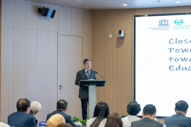 Professor Zhou Zuoyu, Director of the UNESCO International Research and Training Centre for Rural Education (INRULED), delivered a report titled Close the Gap: Teacher Powerhouse and the Roadmap towards Inclusive and Equitable Quality Education in China. He shared three valuable experiences of China in achieving the Sustainable Development Goal 4 (SDG 4) and realizing inclusive and equitable quality education, namely optimizing top-level design, proactively advancing reform, and attaching importance to digital technology empowering education.