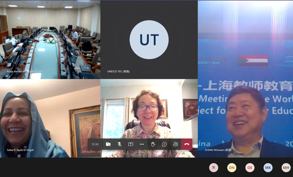 On June 2, 2021, prior to the official launch of the workshop series, TEC first held a project consultation meeting with key participants from the World Bank and Sudan’s higher education sector. At the meeting, Professor Zhang Minxuan introduced an overview of Shanghai’s basic education, the characteristics of teacher education at Shanghai Normal University (SHNU), and the China-UK Mathematics Teacher Exchange Program and teacher exchange programs with various African countries implemented by TEC, emphasizing TEC’s rich international exchange experience in the field of teacher education. He stated that members of TEC’s project team would fully prepare for and implement the relevant workshops in accordance with the specific needs put forward by Sudan during the meeting, to help the Faculties of Education at the University of Khartoum and Bakht Alruda University improve the quality of teacher education and promote their modernization drive. Safa Ghaly, World Bank Practice Manager for East Africa; Sami Mohamed Sheriff, Undersecretary of Sudan’s Ministry of Higher Education and Scientific Research; and other Sudanese participants thanked TEC’s team for their strong support. The three parties unanimously agreed to hold six workshops on different themes from June 9 to July 8, to fully introduce the successful experiences of Shanghai’s teacher education and basic education development to Sudan.