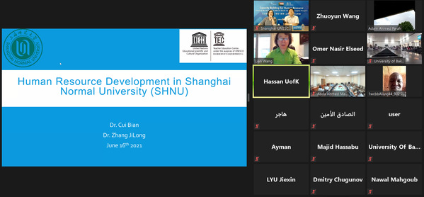 From June 2 to July 8, 2021, entrusted by the World Bank, the UNESCO Teacher Education Centre (hereinafter referred to as TEC) hosted six teacher education policy consultation workshops for Sudan’s higher education sector. The series of workshops was chaired by Wang Lianqin, Manager of the World Bank’s Sudan Higher Education Assistance Project, and Safa Ghaly, World Bank Practice Manager for East Africa, attended the opening ceremony and delivered a speech. Venue-specific sessions were set up at Sudan’s Ministry of Higher Education and Scientific Research, the Faculty of Education at the University of Khartoum, and the Faculty of Education at Bakht Alruda University. Professor Zhang Minxuan, Director of TEC, and members of the project team organized six richly content workshops for officials from Sudan’s Ministry of Higher Education, administrators, and full-time teachers from the two universities, and the event achieved complete success.