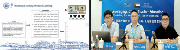 On July 7, the fifth workshop focused on Leveraging ICT for Teacher Education, delivered by Wang Gong, Deputy Director of the Academic Affairs Office; Dr. Ji Jun from the School of Information and Electrical Engineering; and technical expert Guan Zhida. By explaining the application of ICT at SHNU, they demonstrated SHNU’s practices in continuously transforming learning models and deepening blended learning. They detailed how to use ICT for blended learning from technical support, content development, and equipment operation, elaborating on changes that occur before, during, and after classes, and vividly illustrating the positive role of ICT in building high-quality education in the information age. Finally, in response to Sudan’s questions about how to apply blended teaching to practical courses and examinations, and how to improve teachers’ information literacy, the Chinese team conducted in-depth analysis based on China’s infrastructure construction, effectively enhancing Sudan’s understanding of ICT-enabled teacher education.