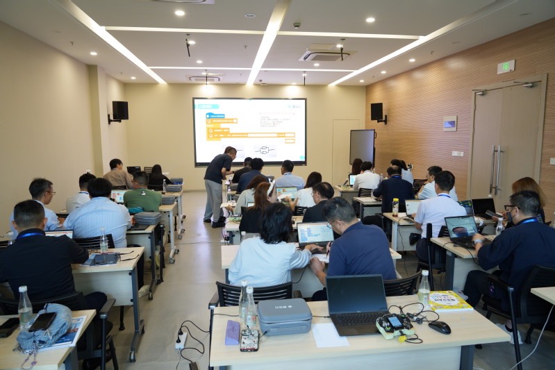 The workshop, themed STEM Teacher Competence Enhancement Training, focused on the introduction and practical operation of AI educational products. The AI education team led by Professor Wang Gong from Shanghai Normal University shared two AI educational products: MetaClass and Xingkongban (Airboard) experiment kits, and guided participants to hands-on experience the realization of basic functions of Xingkongban experiment kits. Participants exchanged insights during the practice and deepened their understanding of STEAM education practices through interactive communication.
