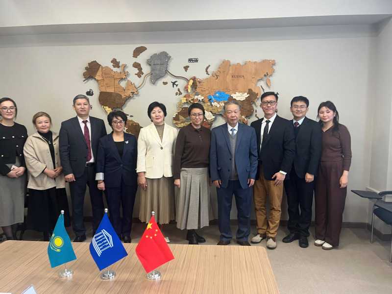 From November 4 to 5, a four-member delegation from the UNESCO Teacher Education Centre (TEC)—including Professor Hu Guoyong, Deputy Director of TEC, Associate Professor Lü Jiexin, Dr. Li Ruimiao, and PhD Candidate Olga—visited Kazakhstan. They paid visits to Abai Kazakh National Pedagogical University and the UNESCO Cluster Office for Central Asia, and held talks with Kazakh National Women's Teacher Training University (KNWTTU).