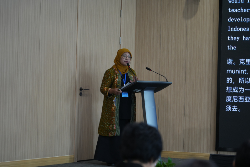 Ms. Mutia Delina, Head of International Cooperation Affairs at the Office of International Affairs of Universitas Negeri Jakarta in Indonesia, focused on best practices in teacher training in Indonesia, highlighting the university's important role in the national teacher education system. Indonesian teachers are required to complete a bachelor's degree in education at designated normal universities such as Universitas Negeri Jakarta. After obtaining the bachelor's degree, pre-service and in-service teachers must participate in teacher professional training programs to obtain certification.