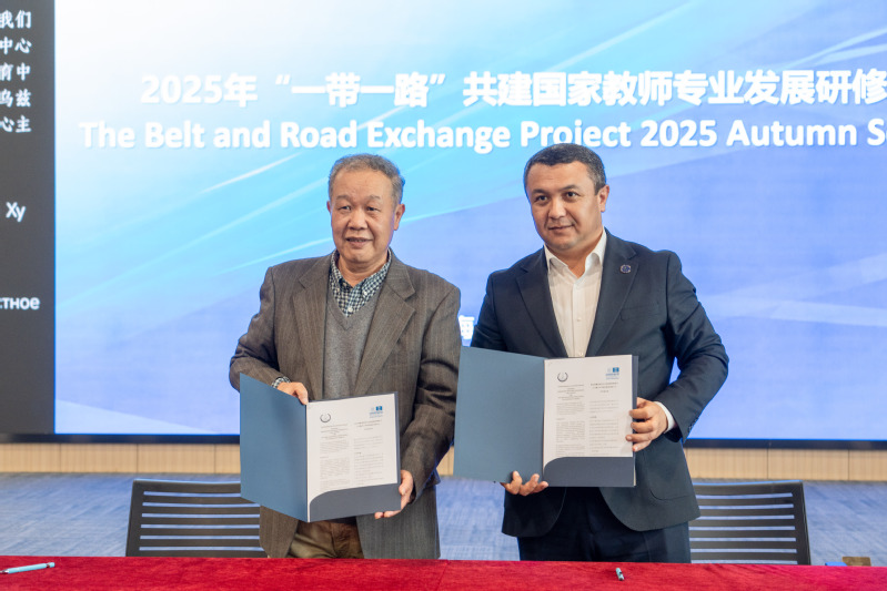 Prior to the ceremony, in the presence of all participants, Deputy Director Hu Guoyong and Mr. Anvar Kuvandikovich Sobirov, Director of the Samarkand Regional Center of Pedagogical Skills of Kazakhstan, solemnly signed the Memorandum of Understanding between UNESCO Teacher Education Centre and Samarkand Regional Center of Pedagogical Skills on behalf of their respective institutions. This signing is an important achievement based on previous friendly communication and full consultation between the two sides, marking that their cooperation in teacher professional development, educational resource sharing and other fields has entered a more pragmatic new stage.