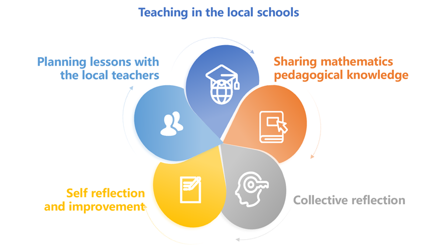 In 2023, with support from the World Bank, all mathematics teachers from School C traveled to Shanghai, China, for a two-week immersive learning event. They observed live classroom teaching, participated in teaching reflection with Shanghai teachers, and explored pedagogy embedded in Share Maths resources. Besides, Chinese volunteers conducted school-based Teaching Research Group activities in the neighbourhood of School C, providing on-site professional support and helping teachers integrate teaching methods into their daily practice.